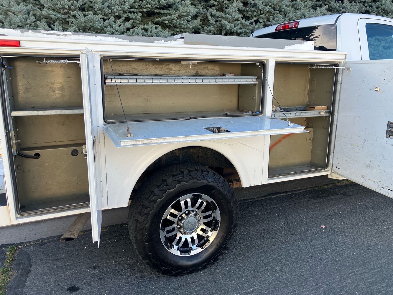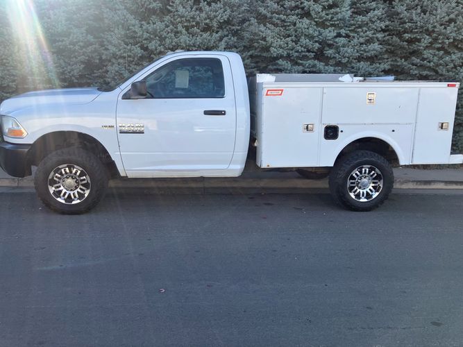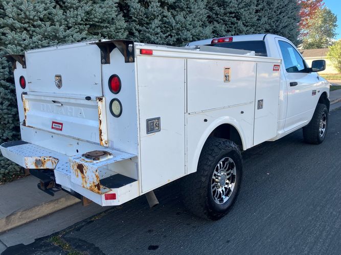 This Ram 2500 Heavy Duty 4X4 Service Body is not your every day work truck. It's like someone may have ordered it to personally suit them. Equipped with the 5.7 liter Hemi V8 cranking out 383 hp and 6speed automatic transmission capable of hauling some heavy loads and then add some creature comforts like air conditioning, power windows and locks, center armrest and a floor console with cupholders and different pockets making the ride home after a hard days work a little nicer.